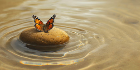 Illustration of a butterfly splashed in river water, beautiful buterfly
