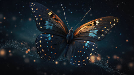 butterfly flying across starry sky. Elements of this image furnished by . High quality photo