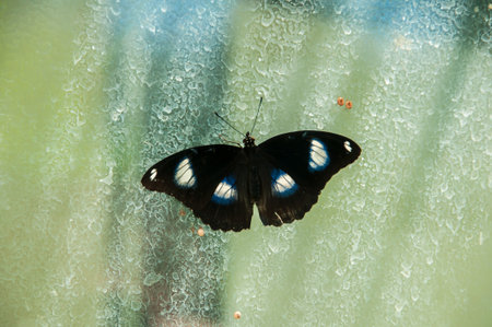 Photo of a close-up of a beautiful butterfly on a vegetative summer background