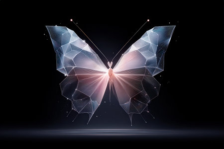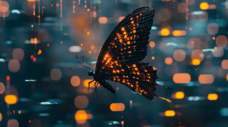 Butterfly wings blend with a circuit board, illustrating the harmony of nature and technology