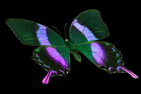 Blue butterfly on a black background. Vector illustration. Eps 10.