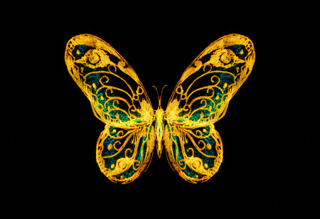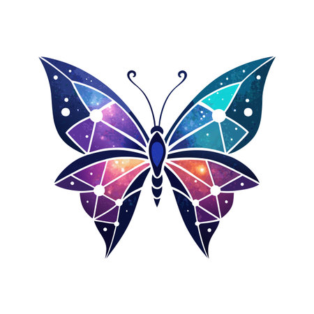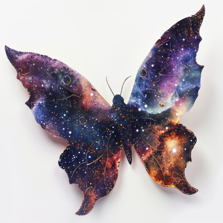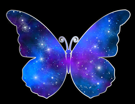Abstract butterfly illustration with galaxy pattern on wings against a white background design element