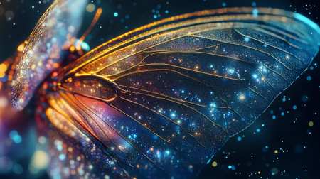 An up-close view highlighting the delicate textures and complex designs of a butterfly's wings, capturing nature's intricate artistry in vivid detail.