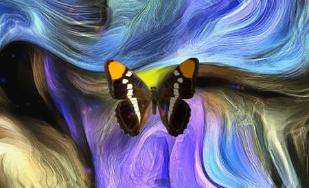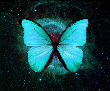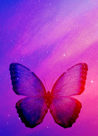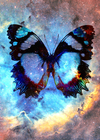 illustration of a butterfly in cosmic space. mixed media, abstract color background