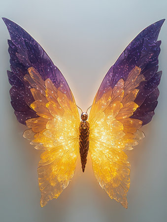 Decorative butterfly made of glass on a light background. Decorative butterfly