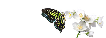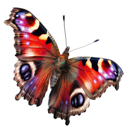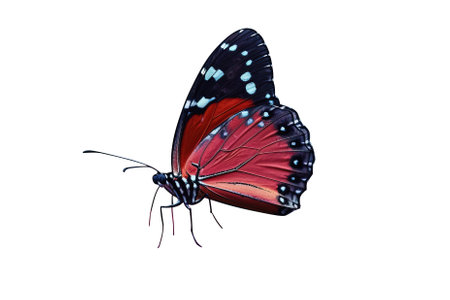 Colorful butterfly isolated on white background with soft shadow and clipping path