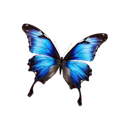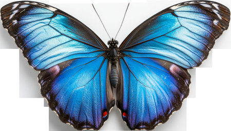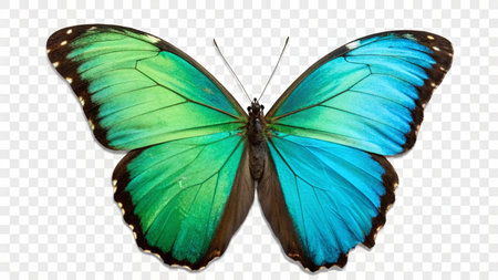 Blue morpho butterfly on transparent background, detailed view. Nature and wildlife concept