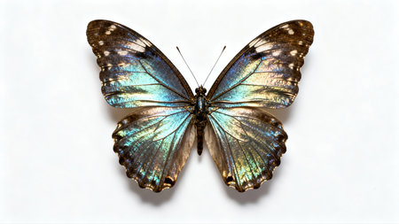 Beautiful butterfly isolated on white background. Blue morpho butterfly.