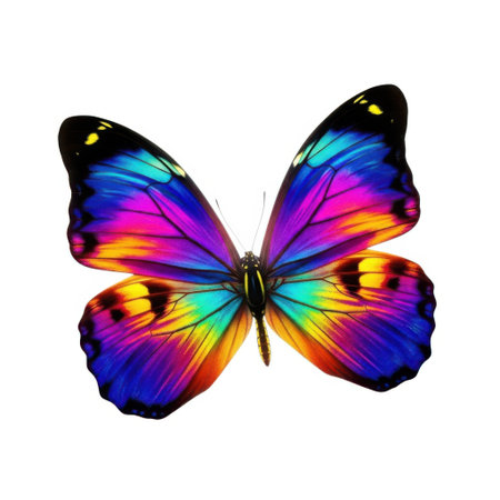 Experience the breathtaking beauty of a rainbow butterfly. Its wings shimmer with a spectrum of vivid colors, creating a mesmerizing display of nature's artistry. Perfect for adding a touch of magic and wonder.