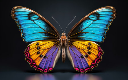 Multi colored butterfly wing, fragile beauty in nature generated by artificial intelligence