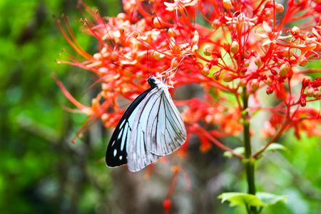 Buttefly and white flowers