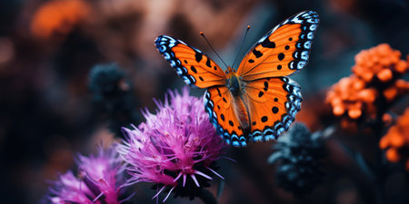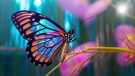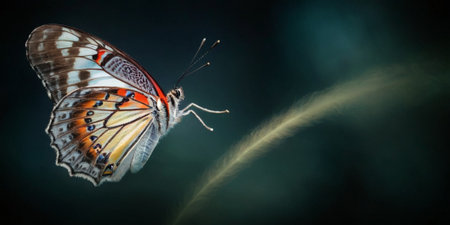 The fragile beauty of a multi colored butterfly in nature macro generated by artificial intelligence