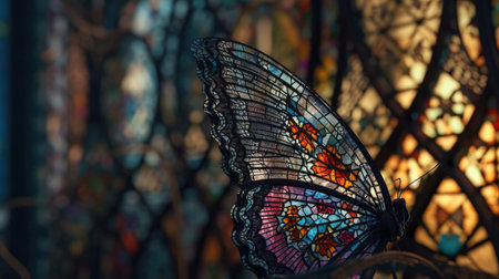 Multi colored butterfly wing, fragile beauty in nature generated by artificial intelligence