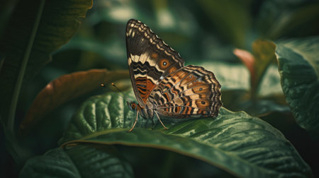 Generative AI : A closeup of beautiful Butterfly resting on leaf