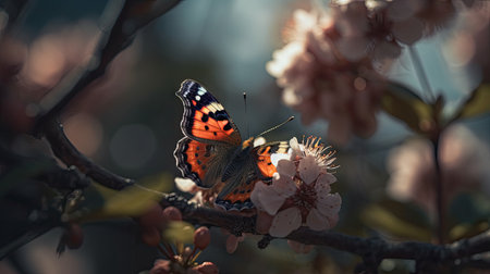 Illustration of a butterfly perched on a beautiful flower, beautiful