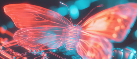 Fusion of nature and technology through double exposure butterfly wings and circuit board