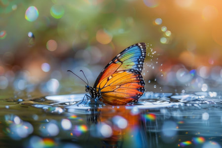 Rainbow butterfly emerging out of the water.