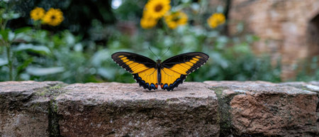 Captivating Macro Shot: The Enchanting Black and Yellow Butterfly -- AR 3:2
