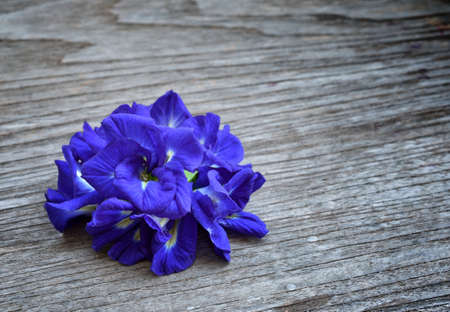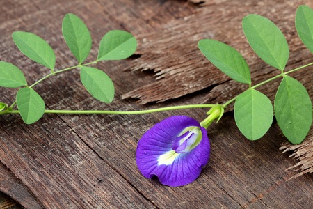 Fresh Butterfly Pea with leaves on old ply wood in nature