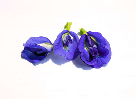 Clitoria ternatea L or Pea flower, Butterfly Pea flowers isolate on white are Blue to purple. It is an herb that contains anthocyanin that helps nourish hair roots, dissolve blood clots.