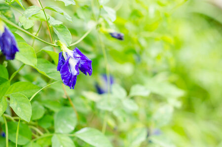 Blue pea flower in the garden. It known as Asian pigeonwings, Bluebellvine, Butterfly pea, Cordofan pea and Darwin pea.