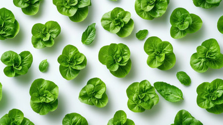 A stunning arrangement of fresh green lettuce leaves isolated on a white background, ideal for culinary usage and promoting healthy eating choices.