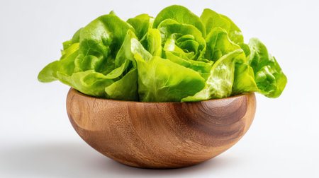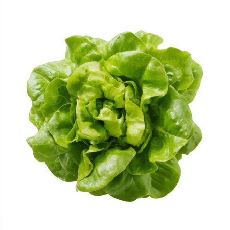 A vibrant head of fresh green lettuce isolated against a clean white background, symbolizing healthy eating and natural food choices in culinary art.