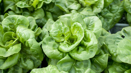 Close-up view of butterhead lettuce, with vibrant green leaves, creating a fresh and inviting image for healthy eating campaigns.