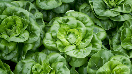 Vibrant green lettuce heads form a lush pattern, symbolizing freshness, healthy eating, organic farming, and natural growth
