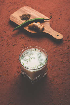 Spiced buttermilk, chaas, chaach, taak, or curd drink for summer in India