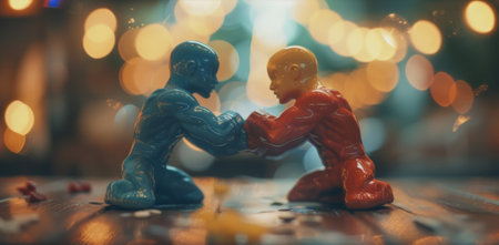Clash of two fists on toned background. Concept of confrontation, fight, domestic violence. Creative collage.