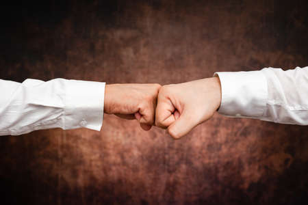 Fist bump on formal wear, gesturing an agreement and cooperation