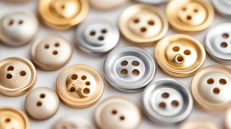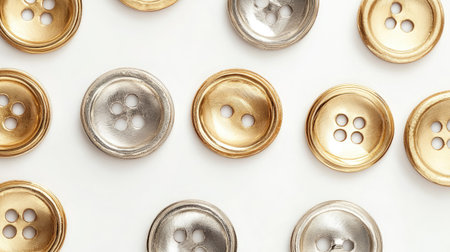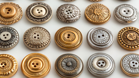 This high-quality image showcases an array of decorative buttons in various shades of gold and silver. Ideal for fashion or crafting projects.