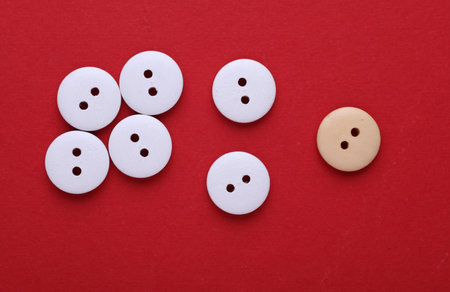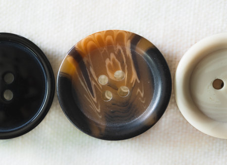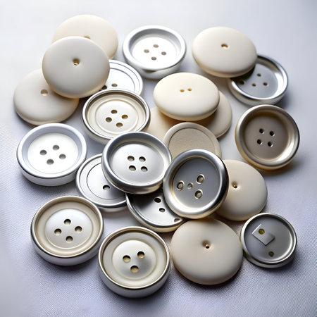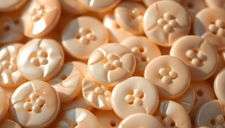 A captivating close-up image showcasing an intricate arrangement of buttons in various colors, textures, and sizes. This visually appealing composition highlights the beauty and diversity of these sewing materials, suitable for crafts or design inspirations.