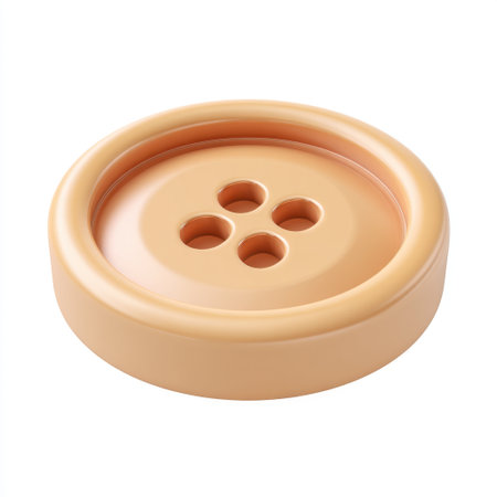 This image features a close up view of a peach colored plastic button with four holes, perfect for crafting and sewing projects, showcasing detail and simplicity.