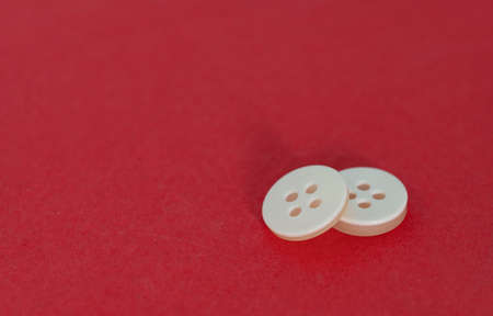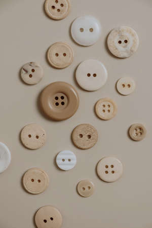 Buttons of different sizes and shades of whites. Selective focus points. Blurred background