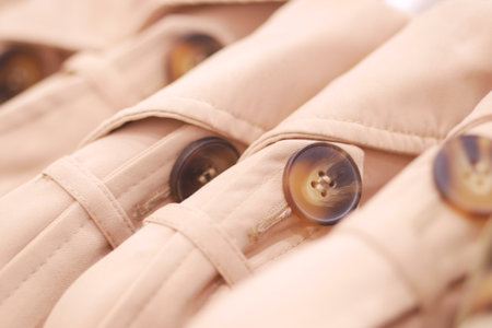 This close-up image showcases the intricate texture of a classic fabric highlighted by stylish buttons, perfect for fashion-themed projects and articles.