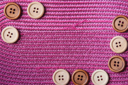 buttons of red color on a brown background. copy space. The concept of sewing and fixing old things. minimalism