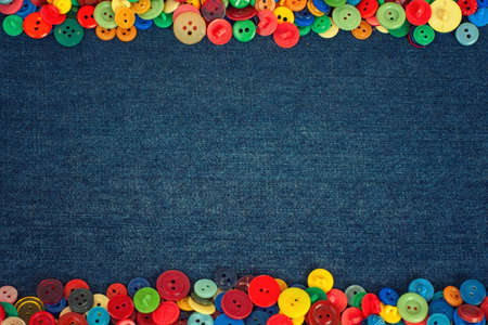 Sewing buttons composition. Needlework concept background. Flat lay and top view photo