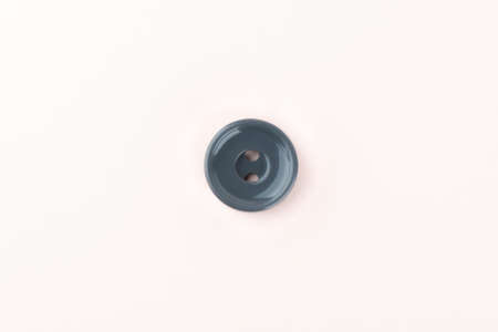 Beautiful texture with a round button for sewing, needlework. Copy space. Flat lay. Blue background.
