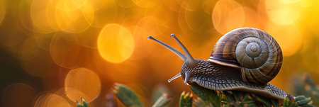 macro shot capturing a snail moving on a leaf, illustrating nature and wildlife theme perfect for banners
