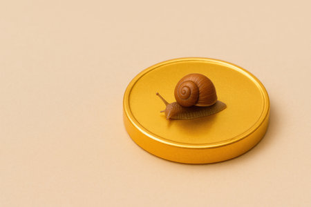 A snail on a golden stand is a symbol of slow wealth. Space for text