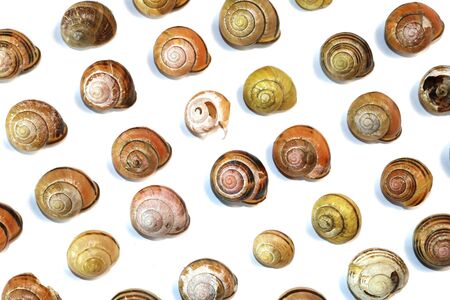 Showing many dried snails, brown background