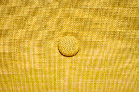 Home upholstered furniture concept. Yellow fabric background. Three round ornament detail. Home comfort.