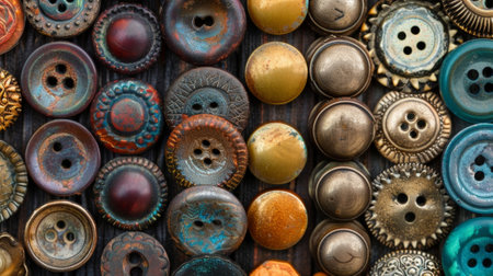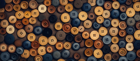 A captivating close-up image showcasing an intricate arrangement of buttons in various colors, textures, and sizes. This visually appealing composition highlights the beauty and diversity of these sewing materials, suitable for crafts or design inspirations.