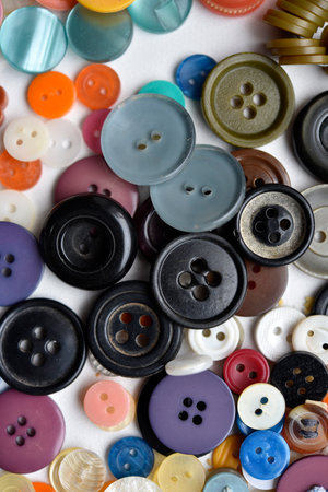 Multicolored buttons on a white background. Round buttons from clothes.