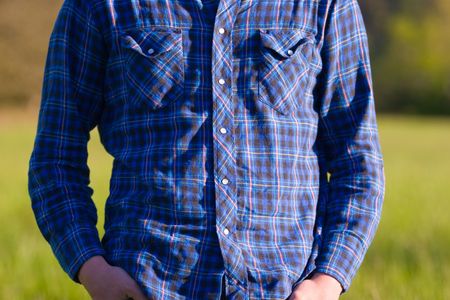 Close up of men's linen shirt. Soft focus.