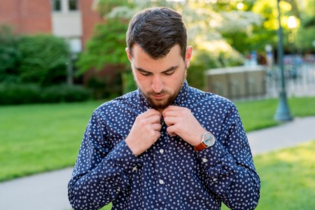 young man hand button of shirt