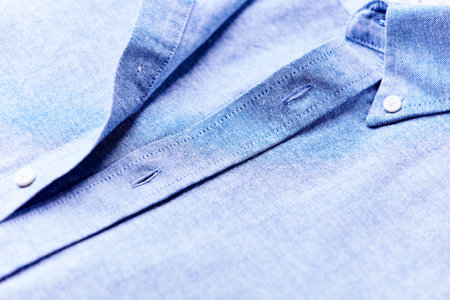 Closeup of a blue shirt with buttons, shallow depth of field