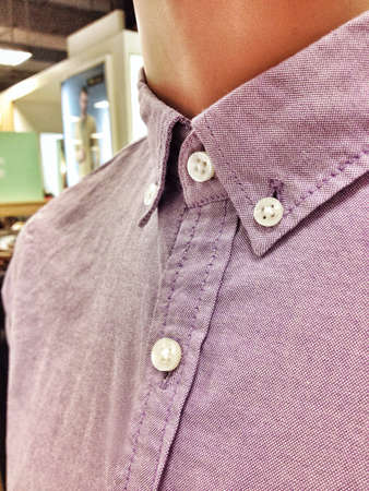 Buttons on linen shirt collar, closeup